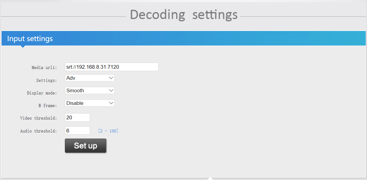 1.SRT Server: Input the IP address of Video Decoder