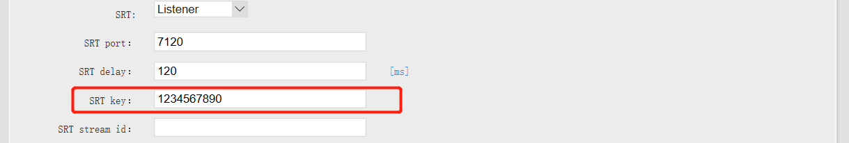 when you don’t set the password, SRT address format: Srt://@:port?mode=listener