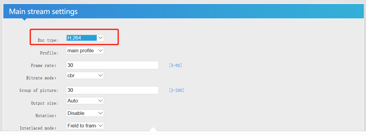 1.3Choose “H.264” in the mainstream set page, because the VIMIX only support h.264 now.