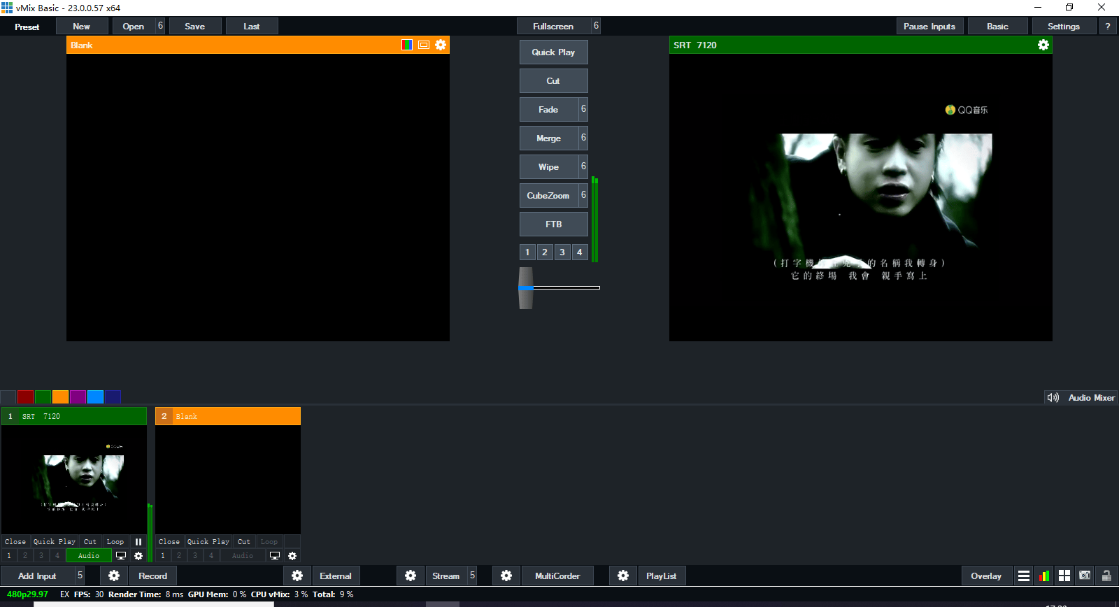 1.The Listener mode of VMIX receives the SRT stream pushed by the video encoder