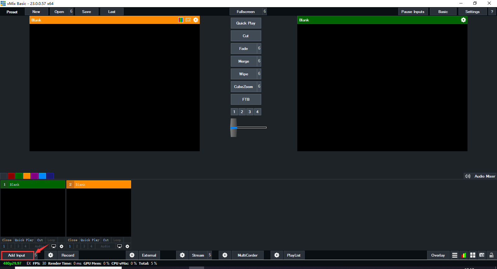 1.5Open your VMIX software, Click “Add input” button in the lower left corner (as shown bellow)
